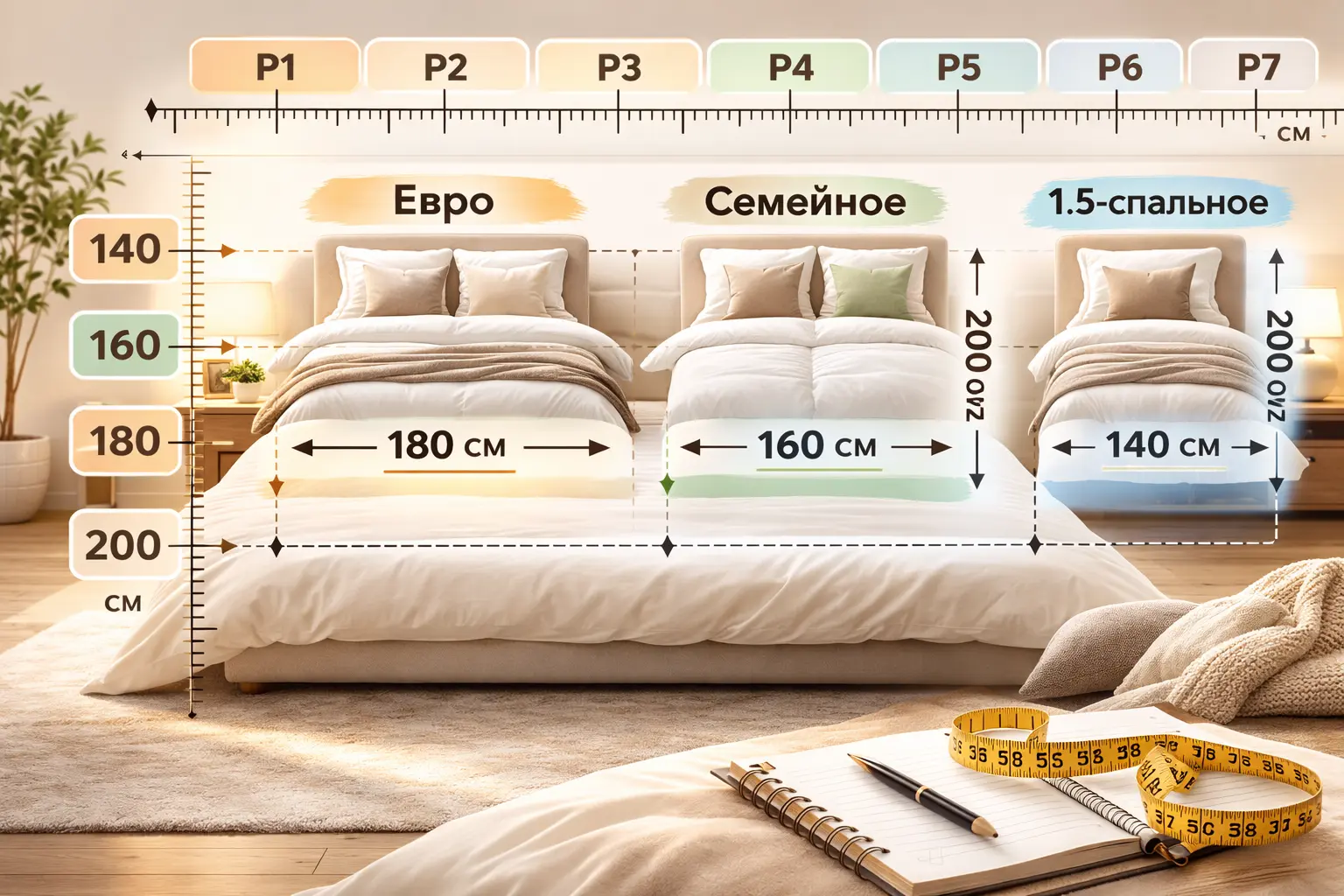 Когда вы решили подобрать новый набор для своей спальни, первое, что нужно сделать — вооружиться сантиметровой лентой. Не стоит ориентироваться на названия «евро» или «двуспальный» как на истину в последней инстанции. Только точный размер вашего одеяла и подушек в см гарантирует успех. На фабрике «Исток» мы разработали систему кодировок P1–P7, чтобы упростить ваш выбор и сделать его безошибочным при заказе онлайн.