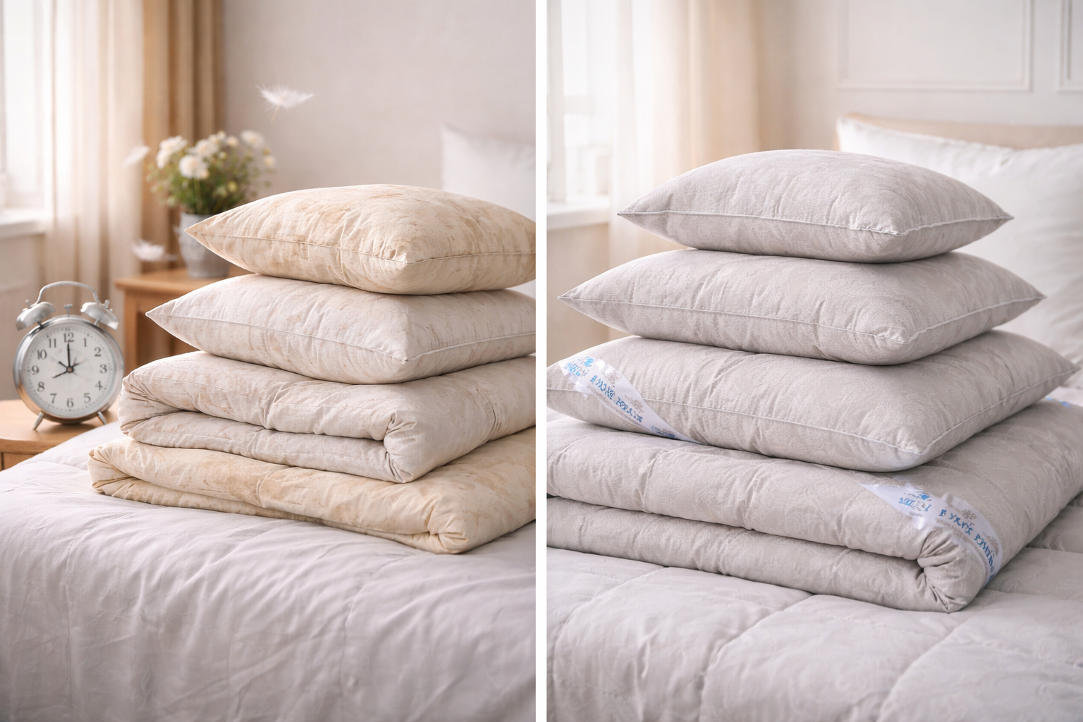 Даже если вы регулярно стираете постельное белье и сдаете подушки в чистку, структура наполнителя (особенно пера) со временем разрушается механически. Заменять изделия нужно вовремя, чтобы время, проведенное в кровати, восстанавливало силы, а не отнимало их.