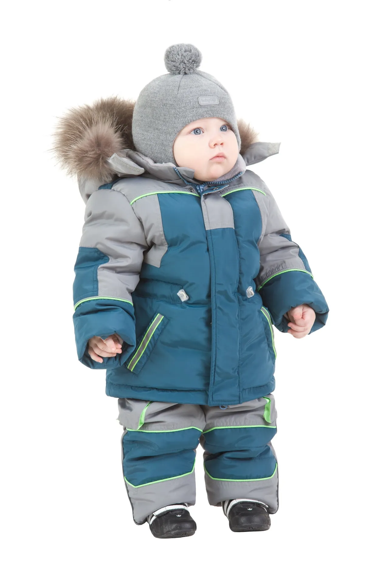 Описание: Зимний костюм на мальчика до 2х лет – отличный вариант для прогулок в холодное время года. Полукомбинезон на синтепоне с накладными карманами не стесняет движений, поэтому легко позволит бегать, кататься с горок, строить снеговиков и огромные снежные крепости. Лямки регулируются на липучке, можно подтянуть по размеру, когда малыш подрастет. Куртка из 100% гусиного пуха легкая, комфортная и очень теплая. Кулиска на талии регулируется по размеру. Опушка на капюшоне из натурального енота заботится о теплоте изделия даже в сильные морозы. Комбинирование серого и яркого-бирюзового цветов смотрится стильно и ярко. Комплект отлично садится ребенку по размеру, ничего не сдавливает и дарит настоящее тепло в любую погоду. Пусть Вашему малышу будет тепло и радостно этой зимой с костюмом Барни от сибирского бренда ISTOK.