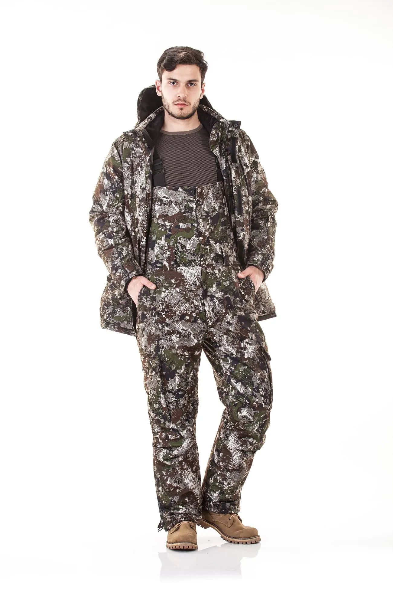 Полукомбинезон с усиленными вставками на коленях и регулируемыми лямками гарантирует удобную посадку и свободу движений при активной рыбалке или охоте. Прочный водо- и ветронепроницаемый верх обеспечивает сухость и комфорт даже в условиях повышенной влажности. Камуфляжный принт помогает оставаться незаметным в природе, а множество карманов позволяет удобно разместить необходимые мелочи.
