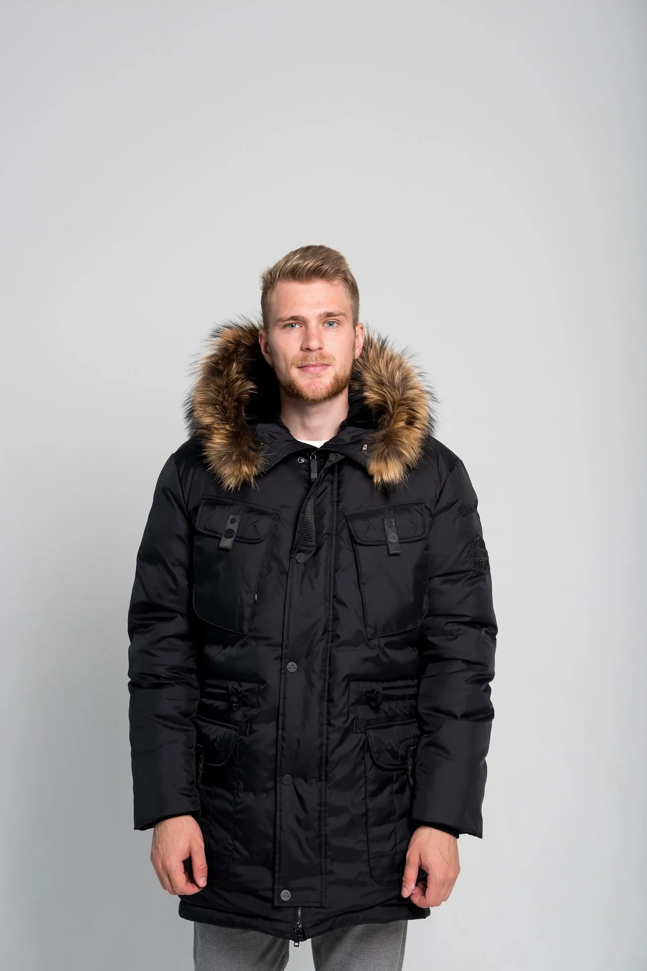 Модель оснащена функциональными карманами с клапанами и молниями, которые позволяют удобно хранить необходимые вещи и согревать руки.