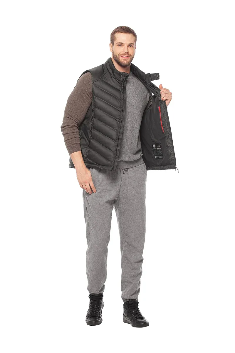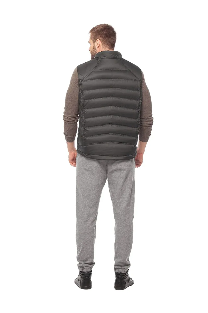 Модель представлена в двух универсальных оттенках — тёмно-сером и чёрном, что позволяет легко подобрать жилет под любой гардероб.