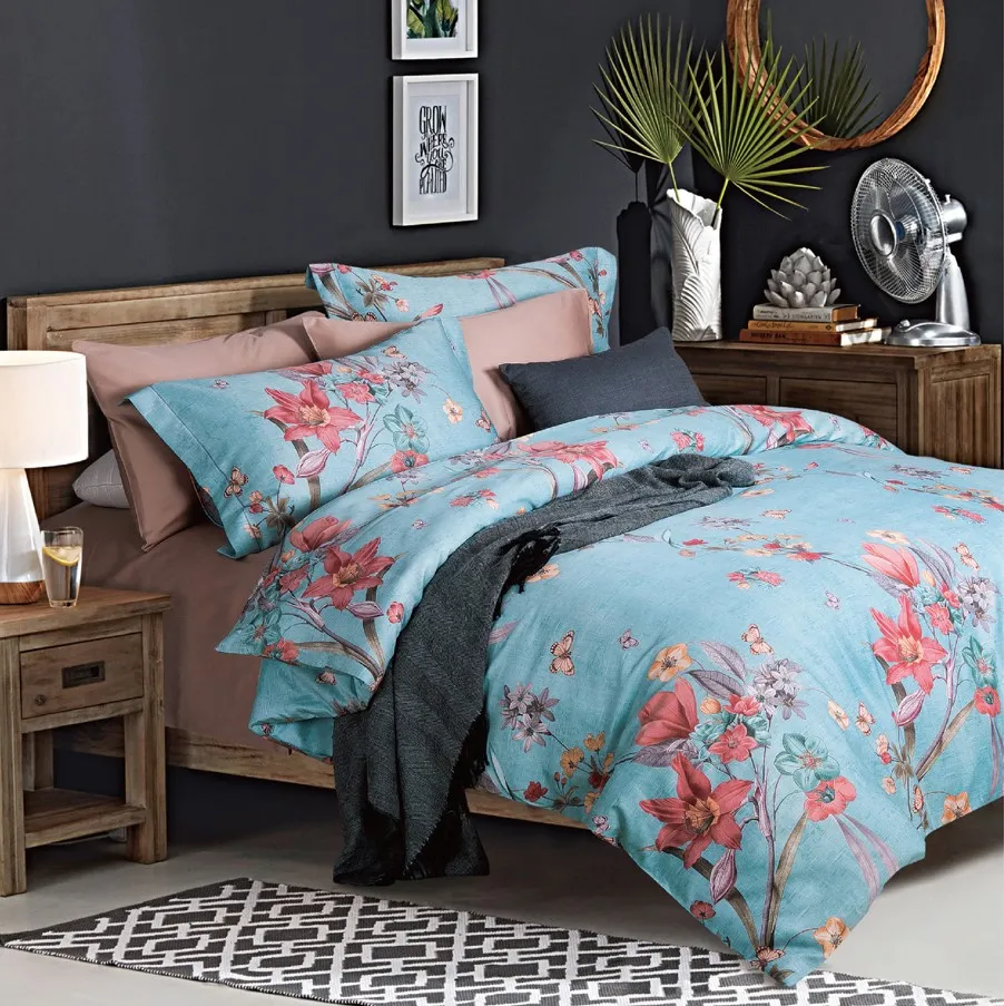 Изготовленный из 100% египетского хлопка, он радует мягкостью, шелковистым блеском и исключительной прочностью, обеспечивая уют и комфорт каждую ночь. Нежно-голубой фон с изящными цветочными мотивами и лёгкими коричнево-коричными акцентами наполняет спальню атмосферой свежести и естественной гармонии. Прочная, дышащая ткань устойчива к выцветанию и сохраняет насыщенность красок даже после множества стирок.