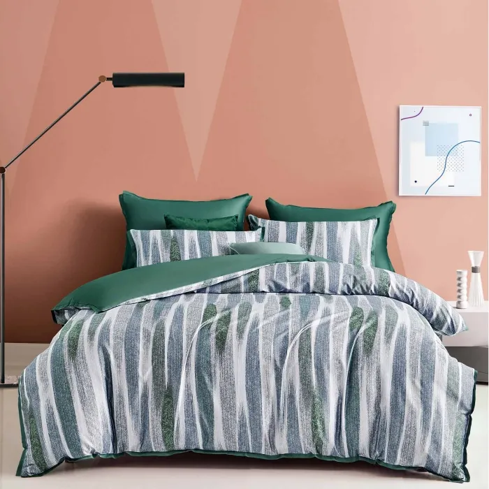 Дизайн в стиле морских волн сочетает мягкие вертикальные полосы с переливами синего, серого и изумрудного оттенков, создавая атмосферу уюта и лёгкого морского бриза. «Морская волна» станет стильным украшением спальни и подарит по-настоящему комфортный отдых, наполняя каждую ночь ощущением свежести и гармонии.