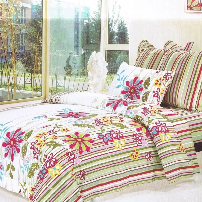 Комплект выполнен из сатина из 100% хлопка, обладающего шелковистой гладкостью, мягким благородным блеском и превосходной воздухопроницаемостью. Нежная основа с контрастными зелёно-бордовыми полосами украшена россыпью крупных цветочных мотивов в оттенках малинового, жёлтого и бирюзового, создавая ощущение лёгкости и радости. Сатиновое переплетение придаёт ткани высокую прочность и стойкость красок, сохраняя мягкость и насыщенность рисунка даже после множества стирок.