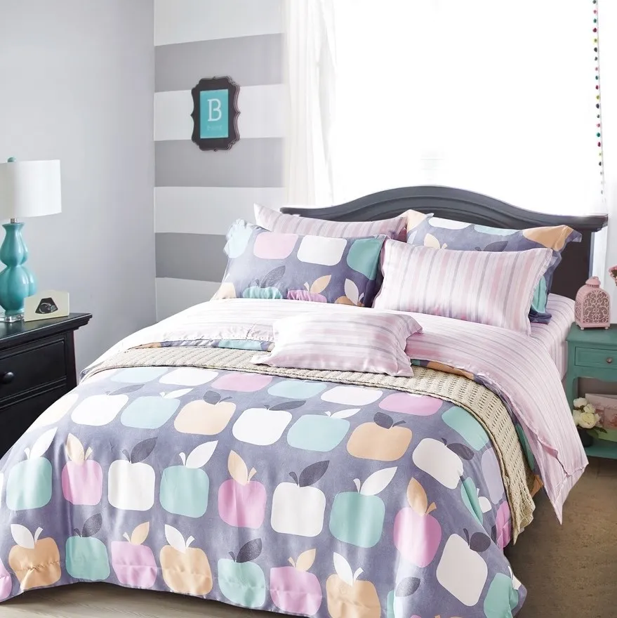 Изготовленный из инновационной ткани тенсель, он сочетает невероятную мягкость, шелковистый блеск и высокую износостойкость. Тенсель прекрасно пропускает воздух, быстро впитывает влагу и обладает гипоаллергенными свойствами, обеспечивая здоровый сон и свежесть в любое время года. Весёлый принт с разноцветными яблоками на нежно-сером фоне создаёт атмосферу радости и игривости, добавляя в интерьер яркий акцент. Материал устойчив к выцветанию и сохраняет свою гладкость даже после множества стирок.