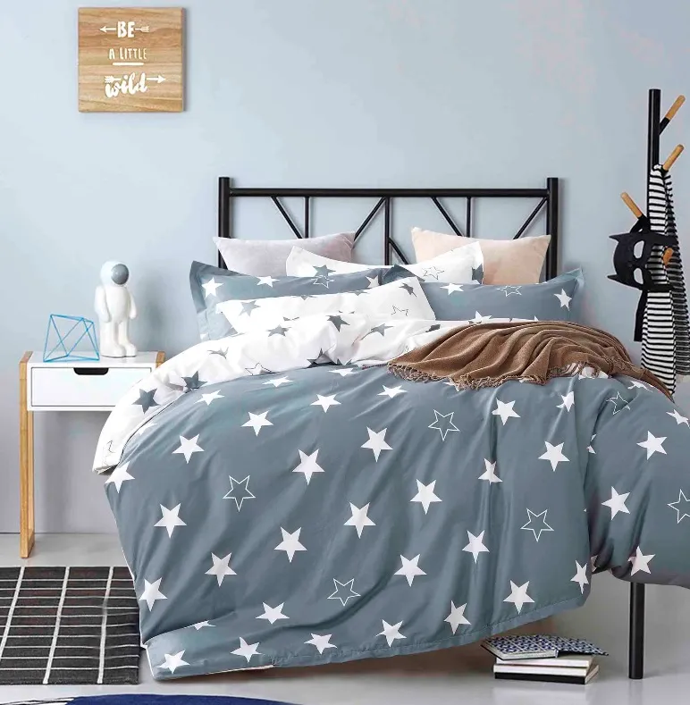 Мягкий сатин из 100% хлопка приятно гладит кожу, хорошо пропускает воздух и сохраняет насыщенные цвета даже после многочисленных стирок. Глубокий серо-голубой фон с контрастными белыми звёздами дарит атмосферу спокойствия и лёгкой мечтательности, делая интерьер более свежим и современным. Плотная, но дышащая ткань обеспечивает комфортный сон в любое время года. Бельё легко стирать, оно быстро сохнет и практически не требует глажения.
