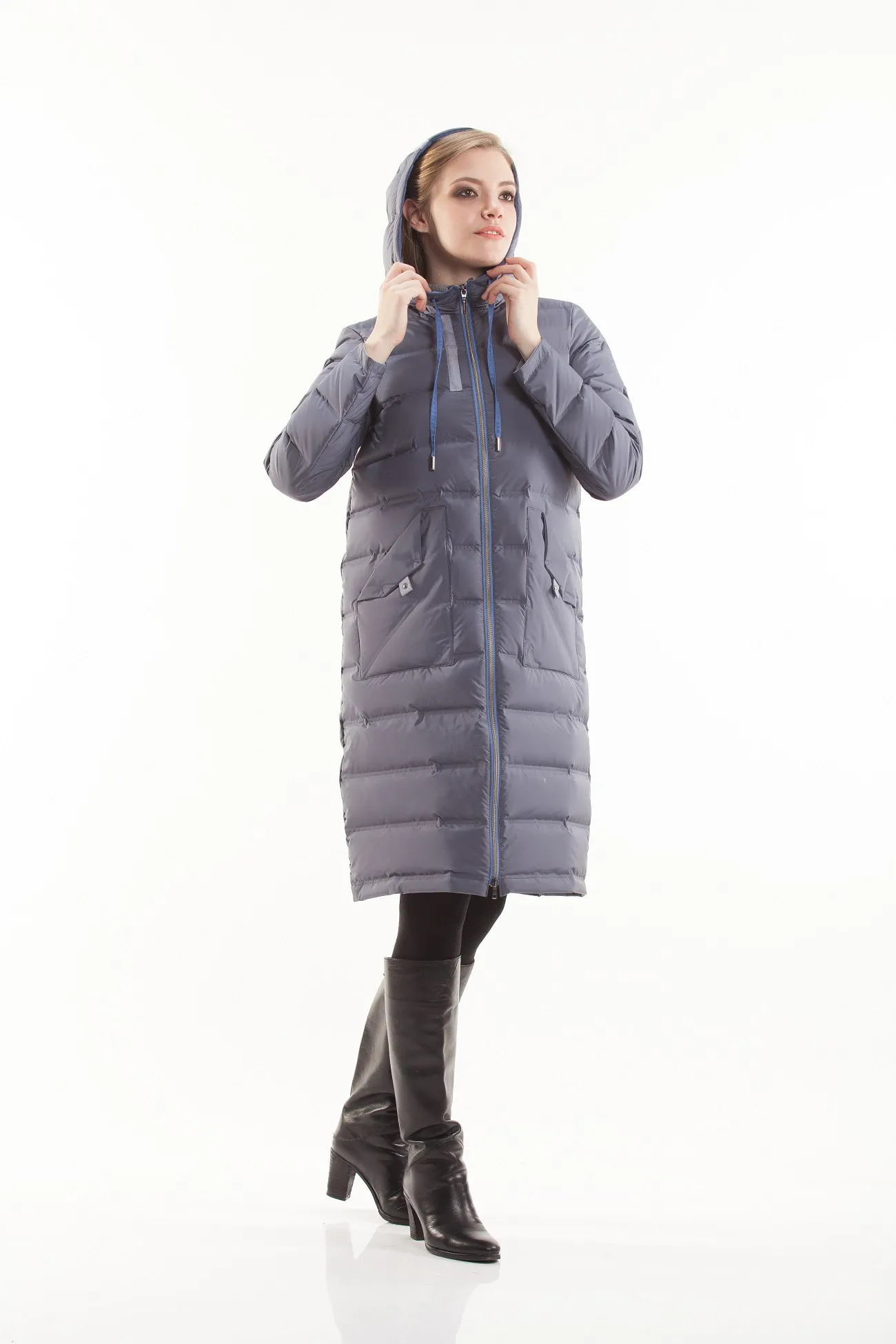 Легкая, но при этом надежно согревающая модель рассчитана на температуру до –10 °С благодаря наполнителю из 100% натурального пуха, который обеспечивает отличную теплоизоляцию и комфорт даже в ветреную погоду. Прямой удлиненный крой визуально вытягивает силуэт, подчеркивая элегантность фигуры и позволяя свободно двигаться.
