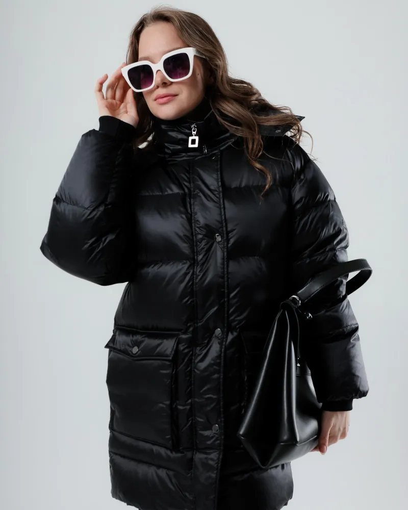 Удлинённый прямой крой прикрывает бёдра, создавая дополнительную защиту от холода, а высокий воротник и объёмный капюшон с регулировкой обеспечивают уют и тепло даже в сильный мороз. Двухзамковая молния и планка на кнопках делают застёжку надёжной и удобной, а большие накладные карманы с клапанами сохранят руки в тепле и обеспечат место для необходимых мелочей.