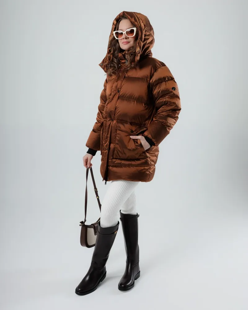 Наполнение из 100% натурального пуха обеспечивает превосходную теплоизоляцию, удерживая тепло даже в самые суровые морозы, при этом куртка остаётся лёгкой и удобной в носке. Верх выполнен из прочного влагостойкого материала с ветроотталкивающей пропиткой, который надёжно защищает от снегопада, порывов ветра и зимней сырости.