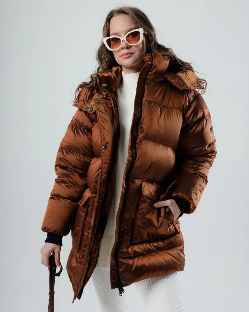 Удлинённый прямой крой прикрывает бёдра, создавая дополнительную защиту от холода, а высокий воротник и объёмный капюшон с регулировкой обеспечивают уют и тепло даже в сильный мороз. Двухзамковая молния и планка на кнопках делают застёжку надёжной и удобной, а большие накладные карманы с клапанами сохранят руки в тепле и обеспечат место для необходимых мелочей.