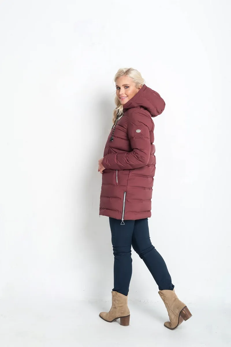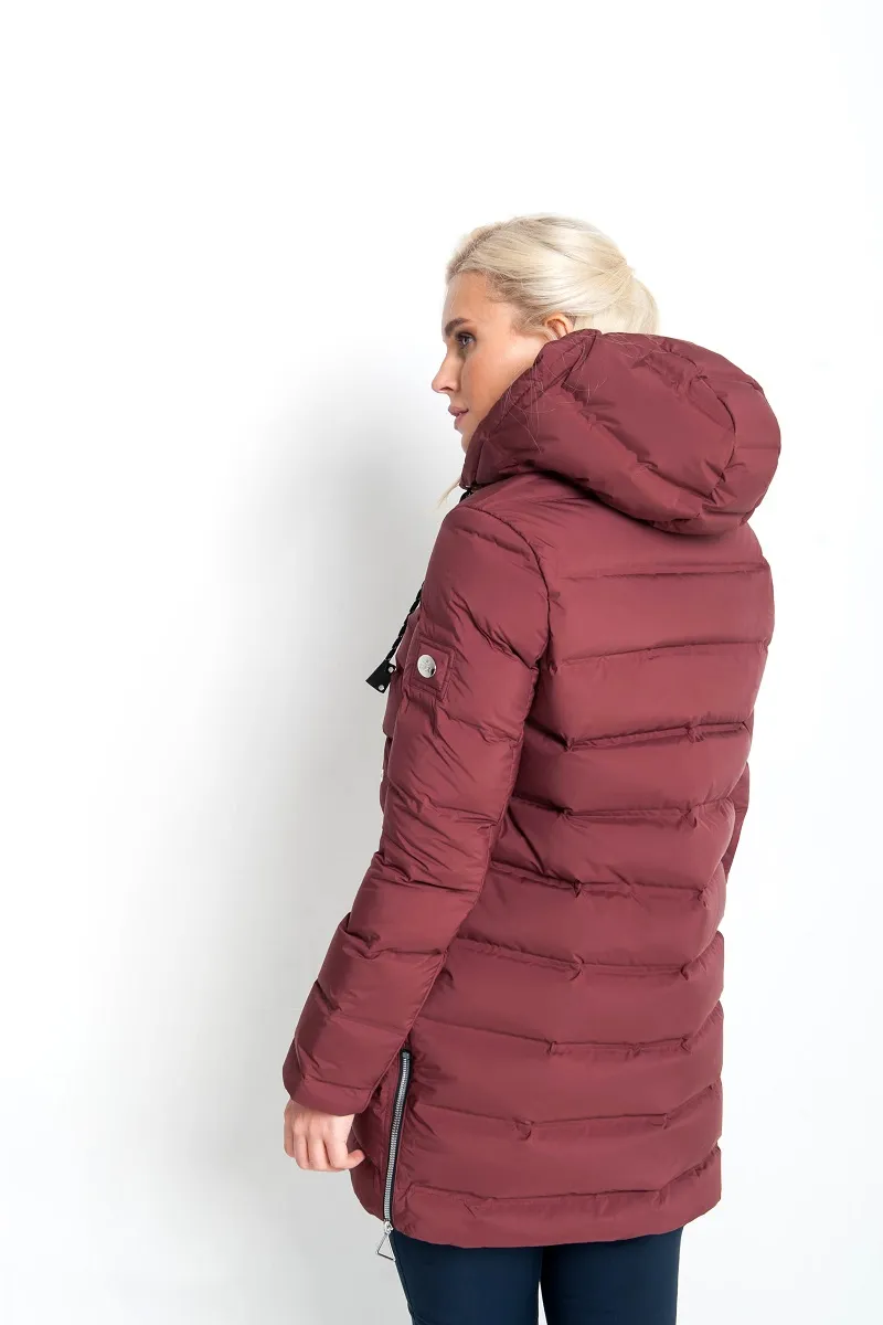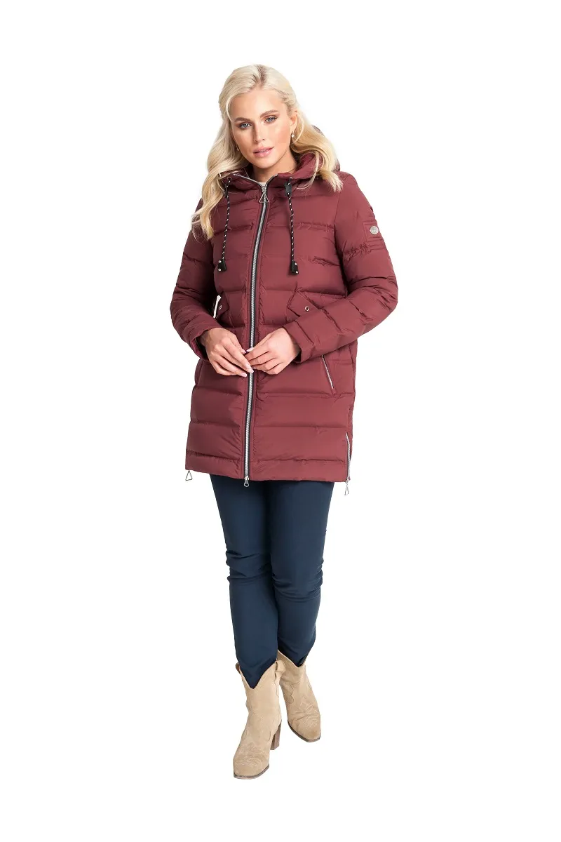 Горизонтальная стёжка придаёт изделию аккуратный объём, подчёркивая женственный силуэт. Функциональные карманы с молниями надёжно сохранят руки в тепле и защитят необходимые мелочи.
