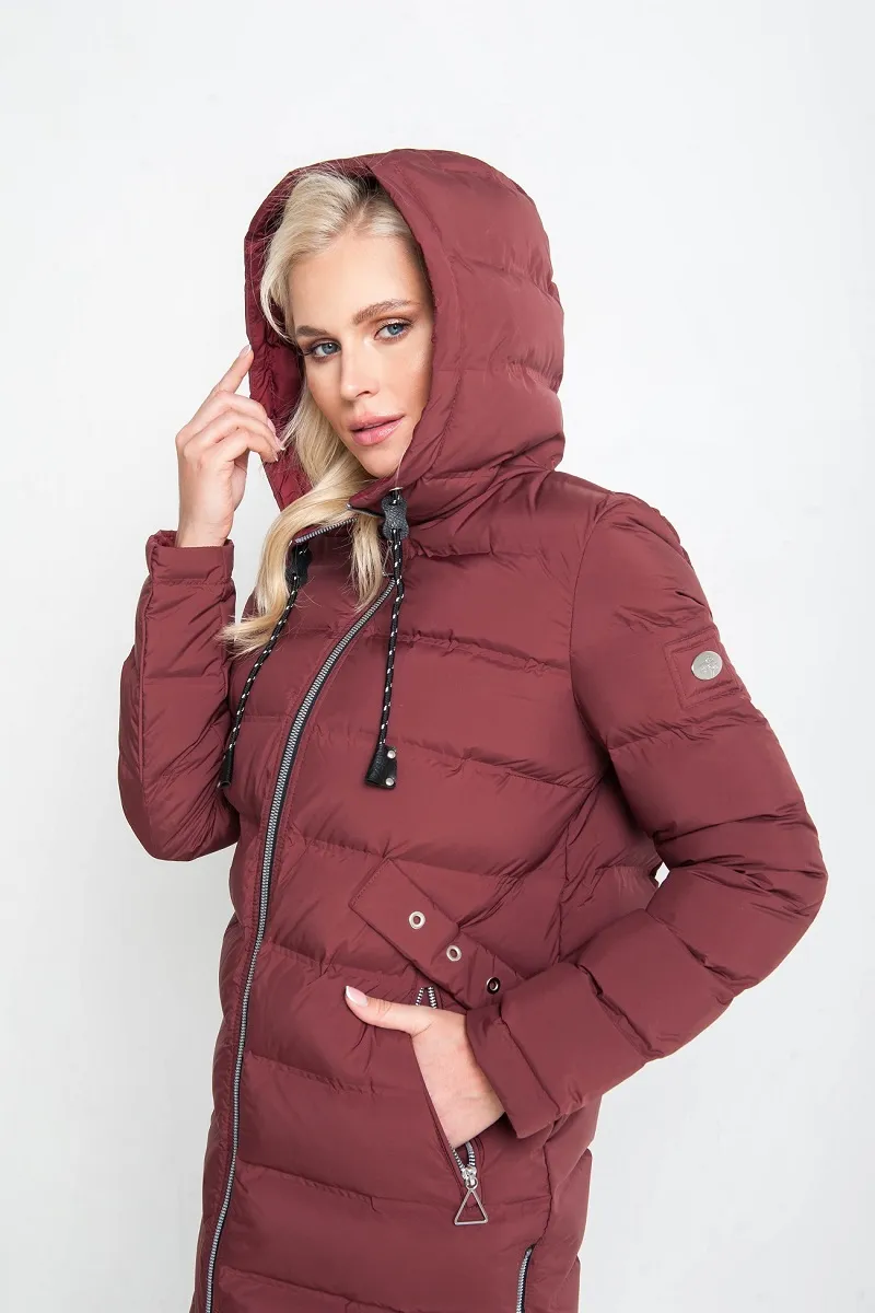 Удлинённый силуэт прикрывает бедра, создавая дополнительный уют, а регулируемый капюшон с высоким воротником обеспечивает комфорт и защиту от ветра. Вертикальные молнии по бокам и двухзамковая центральная застёжка позволяют регулировать посадку и создают интересные акценты в дизайне.