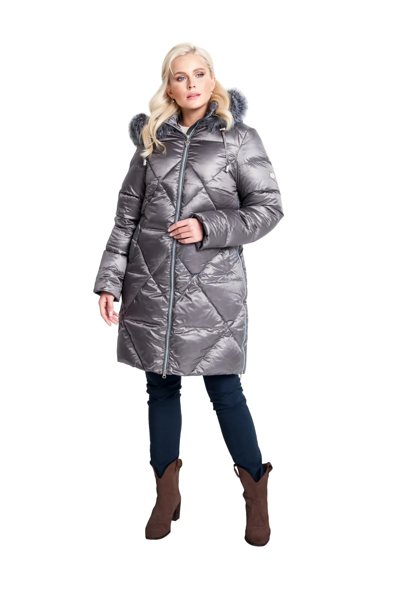 Модель представлена в нескольких актуальных оттенках: нежный розовый, тёмно-синий и универсальный серо-коричневый, что позволяет подобрать вариант под любой гардероб. Пуховик «Эвика» — это удачное сочетание тепла, практичности и элегантного зимнего стиля.