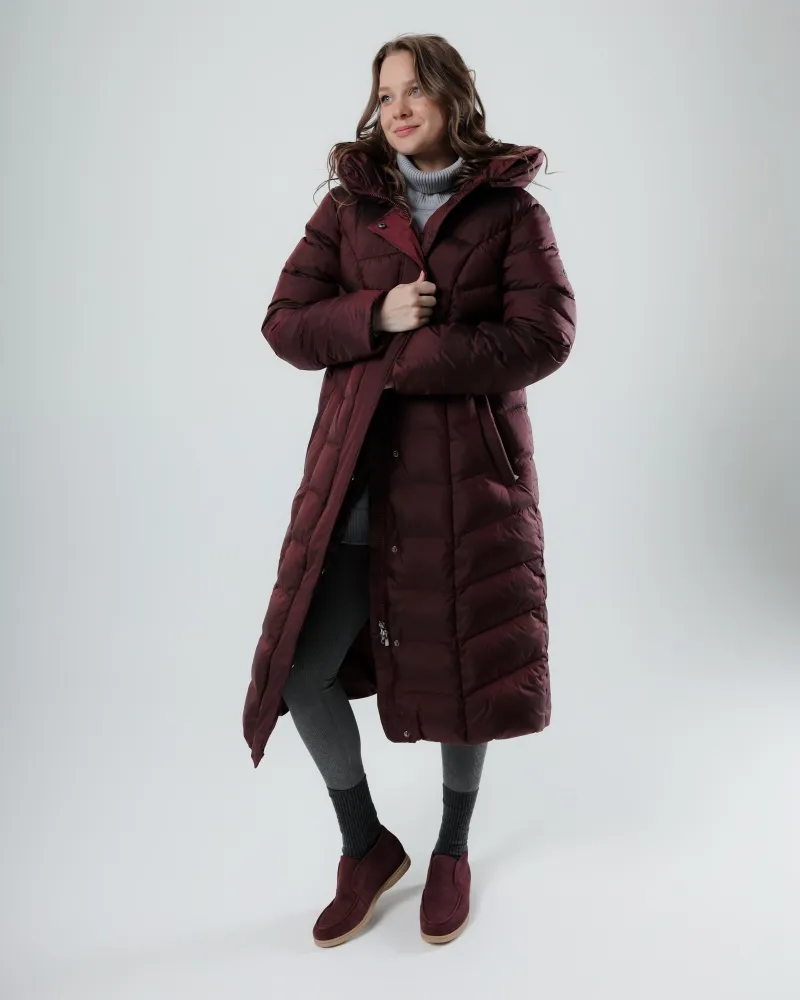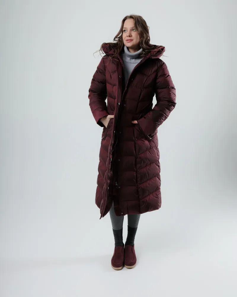 Модель идеально подойдет для женщин с пышными формами, желающих выглядеть в пуховике элегантно и женственно. Вертикальные линии спереди позволят выгодно вытянуть силуэт, скорректировав недостатки фигуры и подчеркнув ее достоинства. Наполнитель из 100% гусиного пуха создает по-настоящему теплый пуховик, в нем вы не замерзните даже в сильные морозы. Карманы по бокам удобны для хранения мелочей.