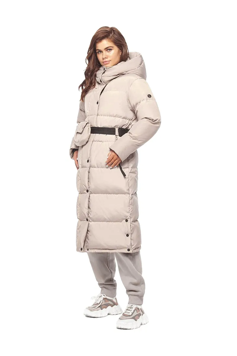 Наполнение из 100% пуха обеспечивает легкость и надежную защиту от мороза, сохраняя тепло даже при температуре до –25 градусов. Благодаря продуманному крою и удобной посадке пуховик не стесняет движений и отлично сидит на фигуре, подчеркивая женственность без лишних деталей.