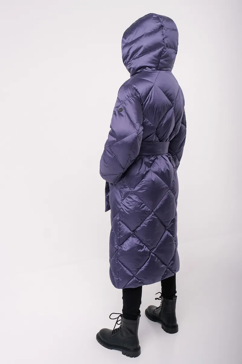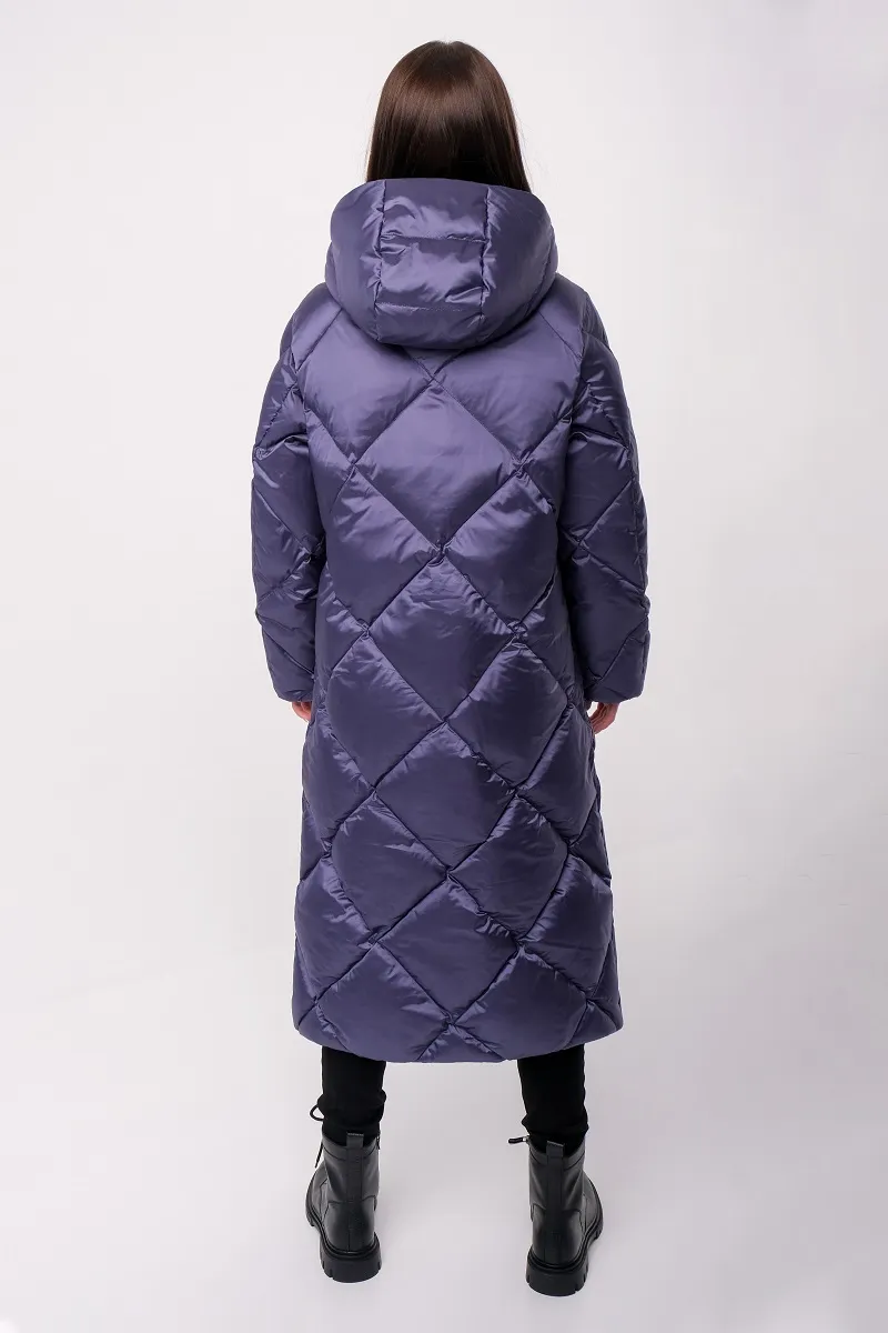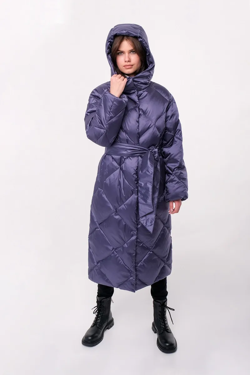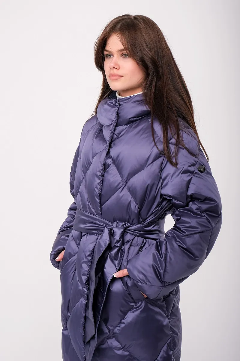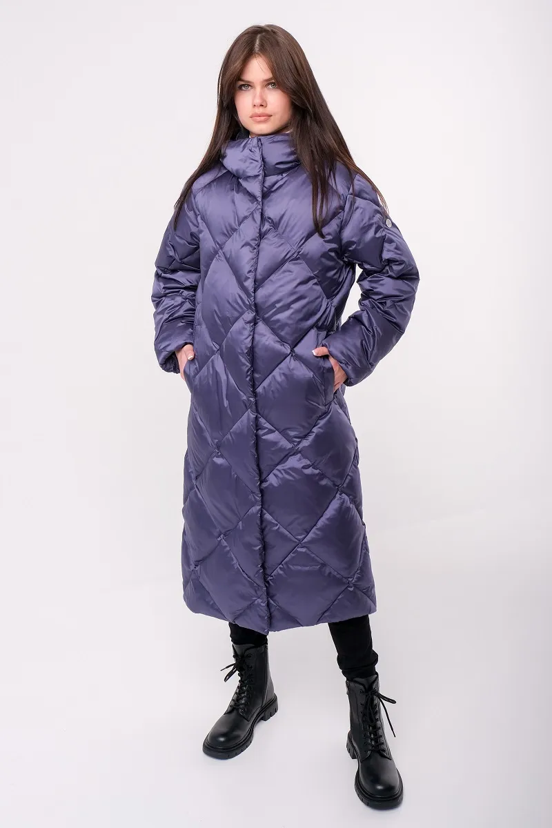 Удлиненный силуэт делает пуховик практичным и универсальным: он прикрывает бедра, создавая дополнительный барьер от холода и ветра. Современная диагональная стежка визуально вытягивает силуэт, подчеркивая фигуру и добавляя модели оригинальности.