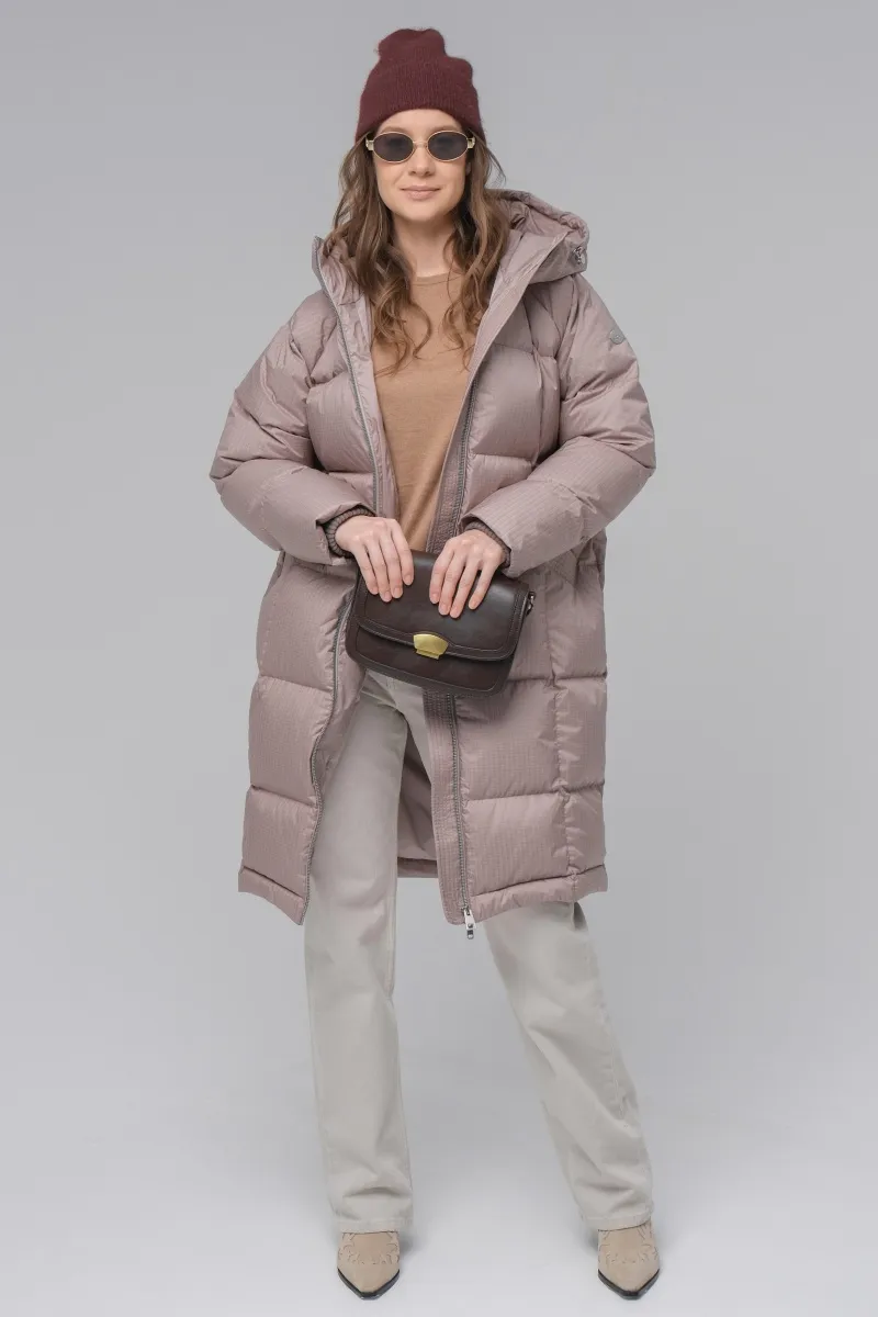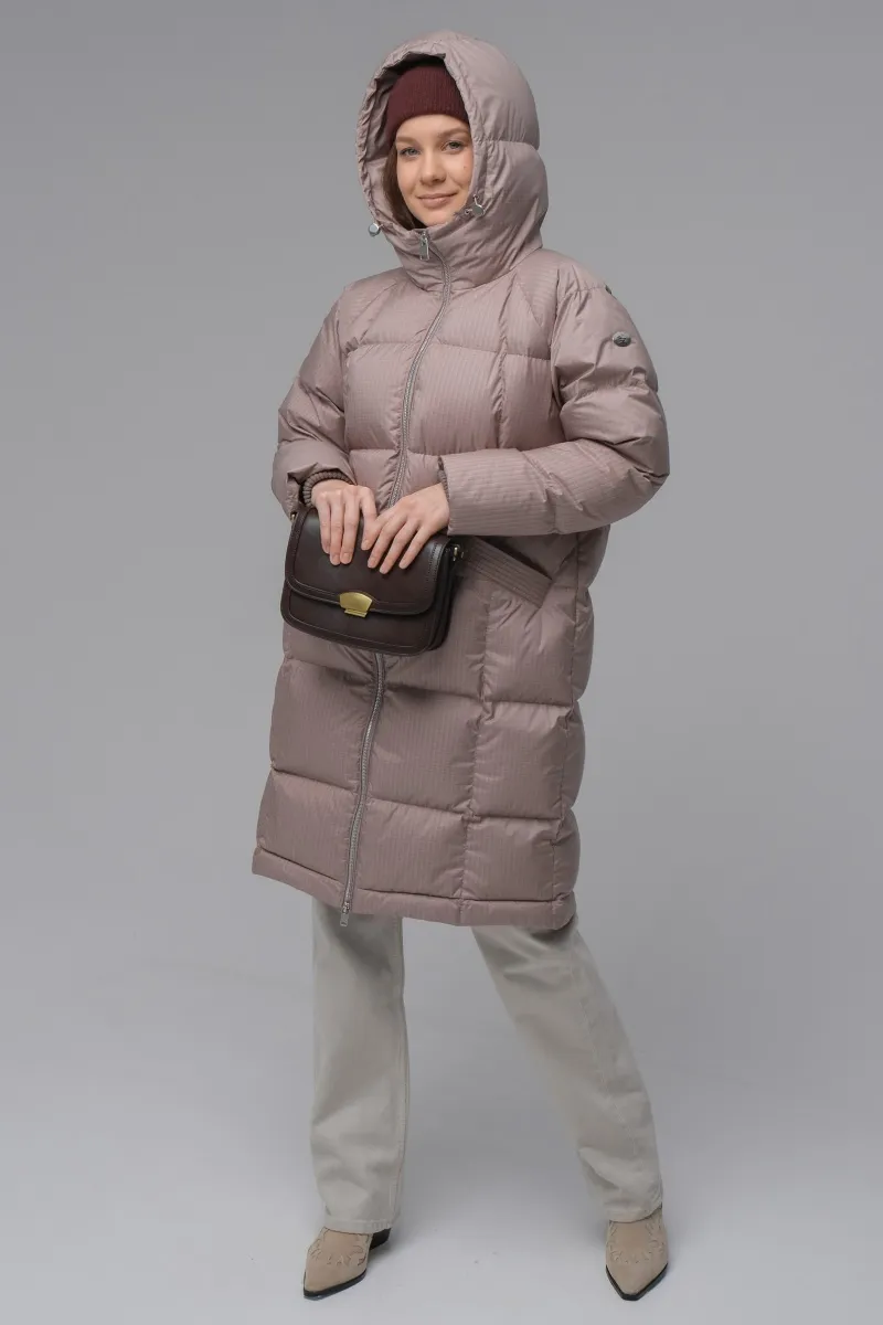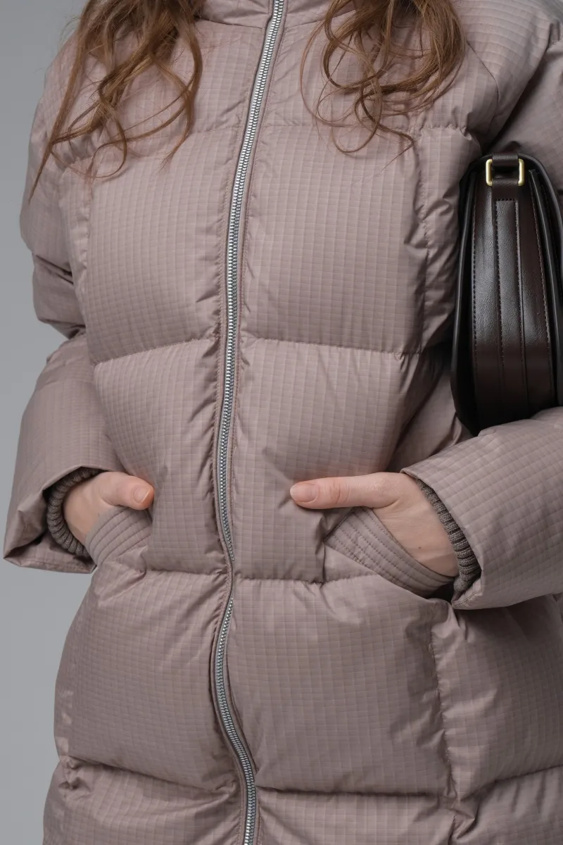 Утеплитель из 100% пуха обеспечивает надежную защиту от мороза и сохраняет комфорт даже при температуре до –25 градусов. Удобный крой и продуманная длина делают пуховик идеальным выбором для любого типа фигуры: он не сковывает движения, красиво садится и визуально подчеркивает силуэт.