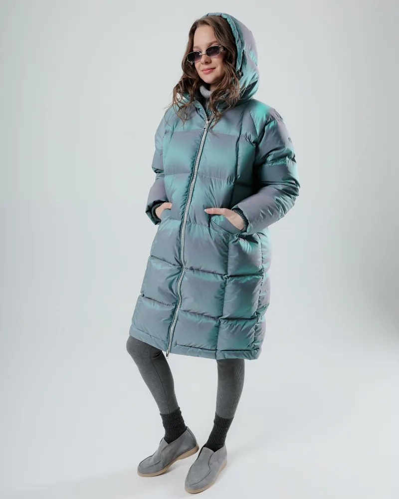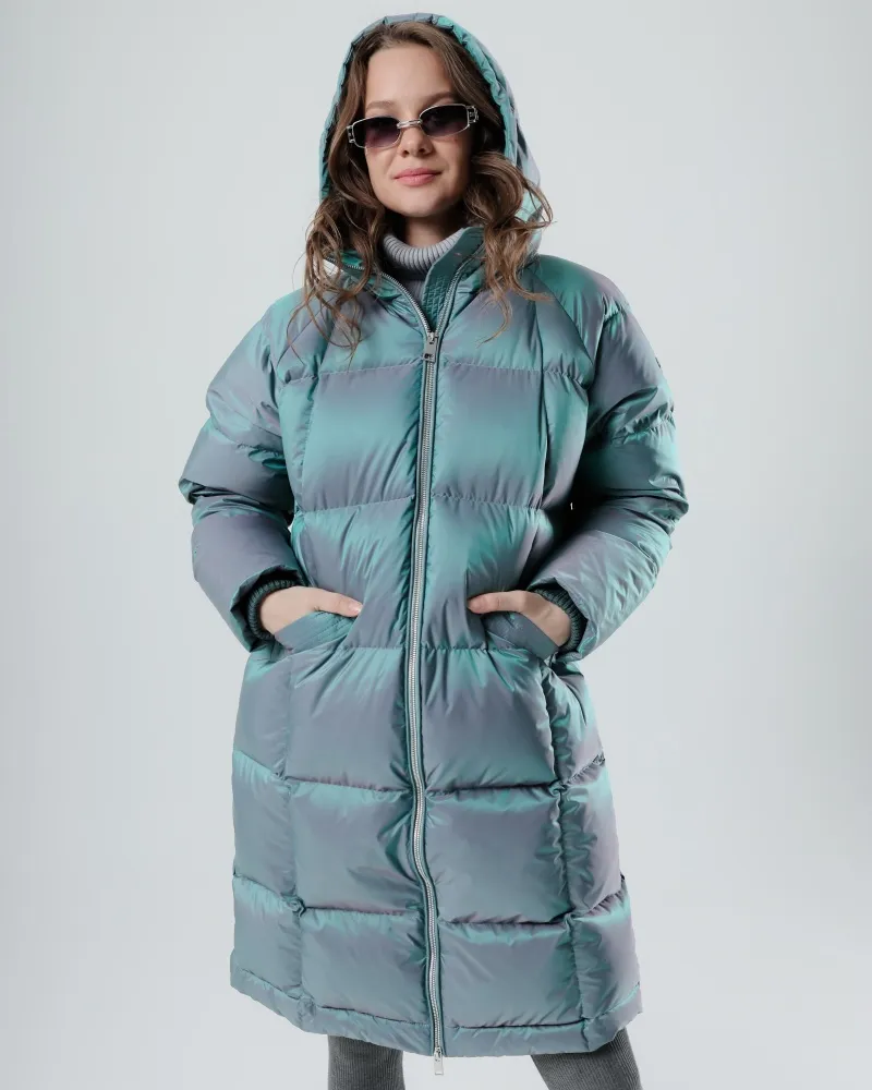 Высокий ворот и объемный капюшон надежно защищают от ветра и снега, а вместительные карманы добавляют комфорта и практичности в повседневной носке.