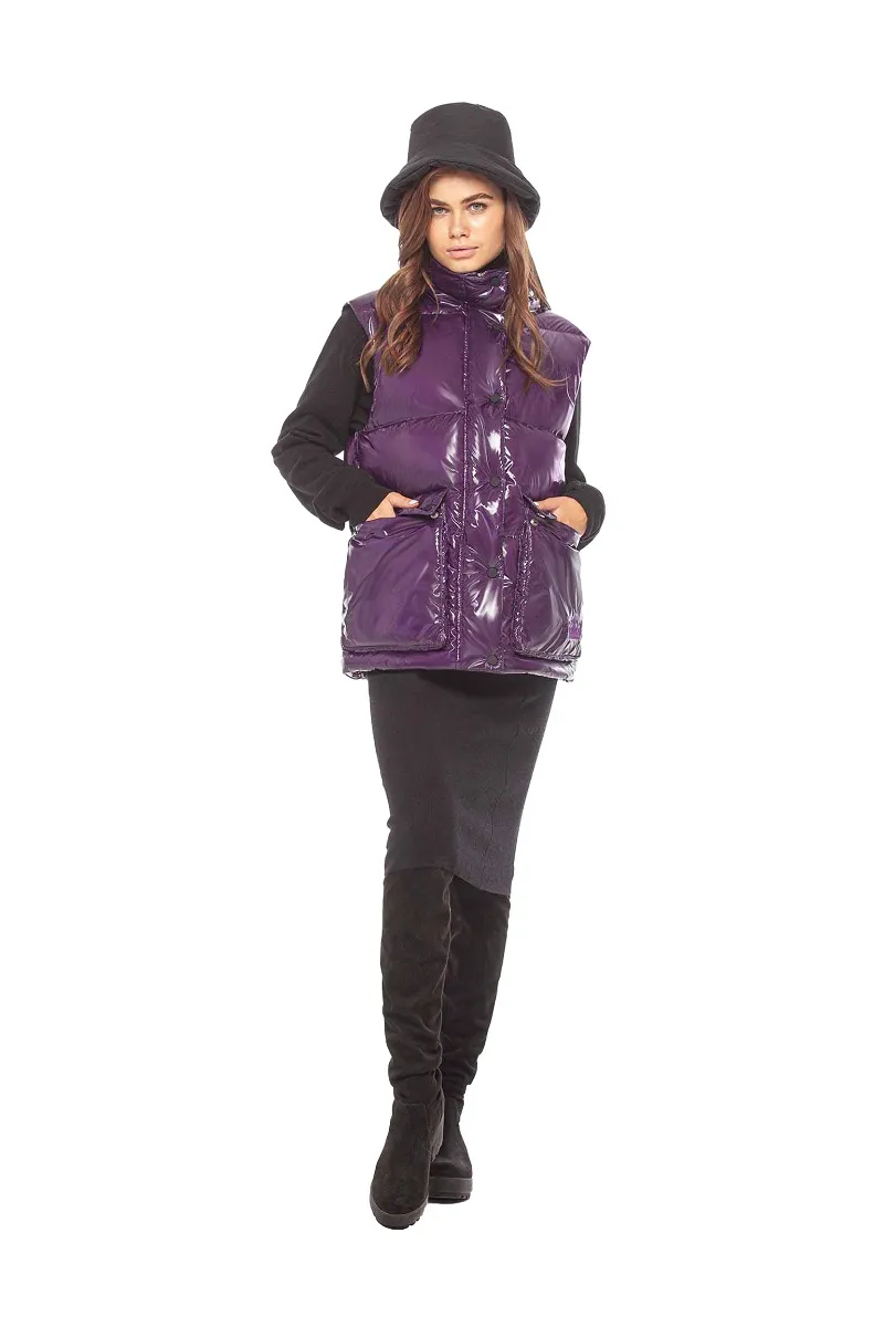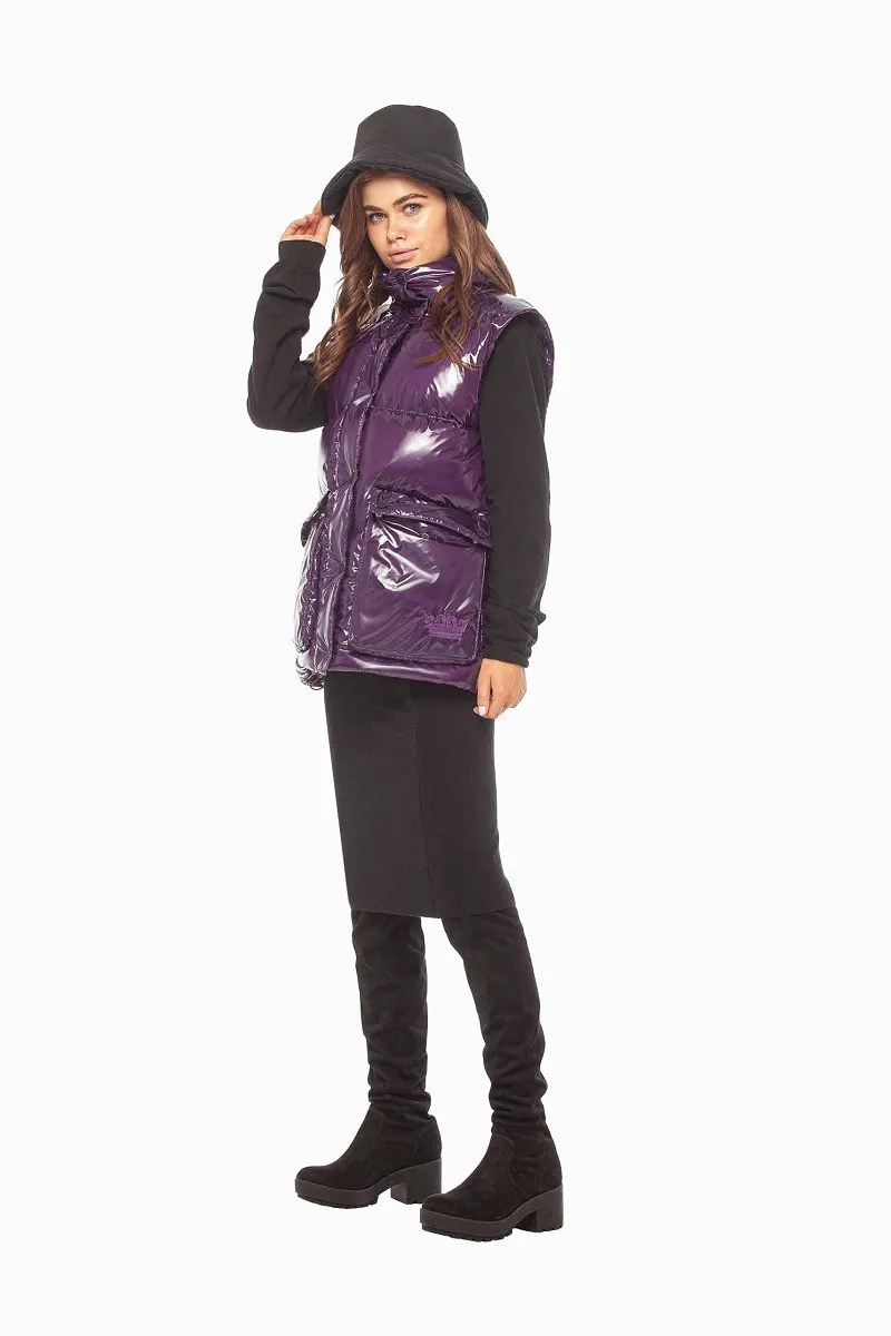 Температурный режим: не ниже 0 °С Описание: Жилет Амина – идеальное решение для тех, кто хочет выглядеть ярко, стильно и эффектно в любой ситуации. Лаковая ткань в сочетании с насыщенным фиолетовым цветом позволит быть в центре внимания и получить массу комплиментов. Большие карманы удобны для хранения мелочей. Наполнитель из 100% сибирского пуха подарит тепло и легкость во время непогоды.
