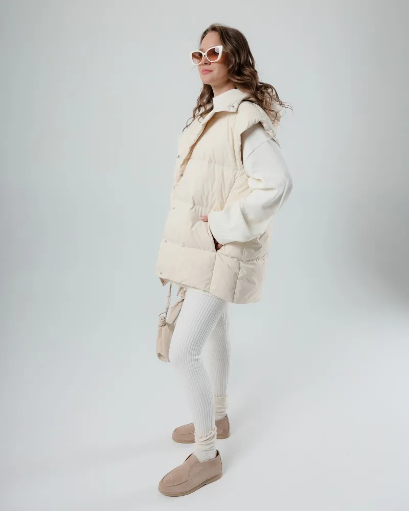 Описание:Настоящий тренд этого сезона! Удлиненный жилет с капюшоном для создания модных, актуальных образов на каждый день.