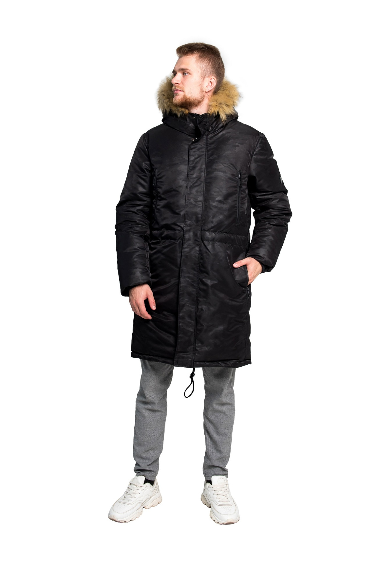 Несъемный капюшон с отделкой из искусственного меха под енота плотно прилегает, защищает от ветра, снега и холода, добавляя модели выразительный и солидный внешний вид. Капюшон продуман так, чтобы сохранять тепло в области головы и шеи даже при сильных порывах ветра. Высокая застежка и плотная конструкция дополнительно усиливают защиту.