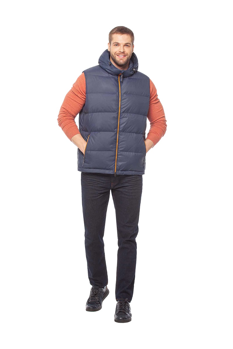 В качестве наполнителя используется 100% натуральный пух, благодаря чему жилет хорошо сохраняет тепло, оставаясь при этом дышащим и невесомым. Модель легко надевается поверх футболки, рубашки, лонгслива или тонкого свитера и гармонично вписывается в разные стили — от спортивного до casual.